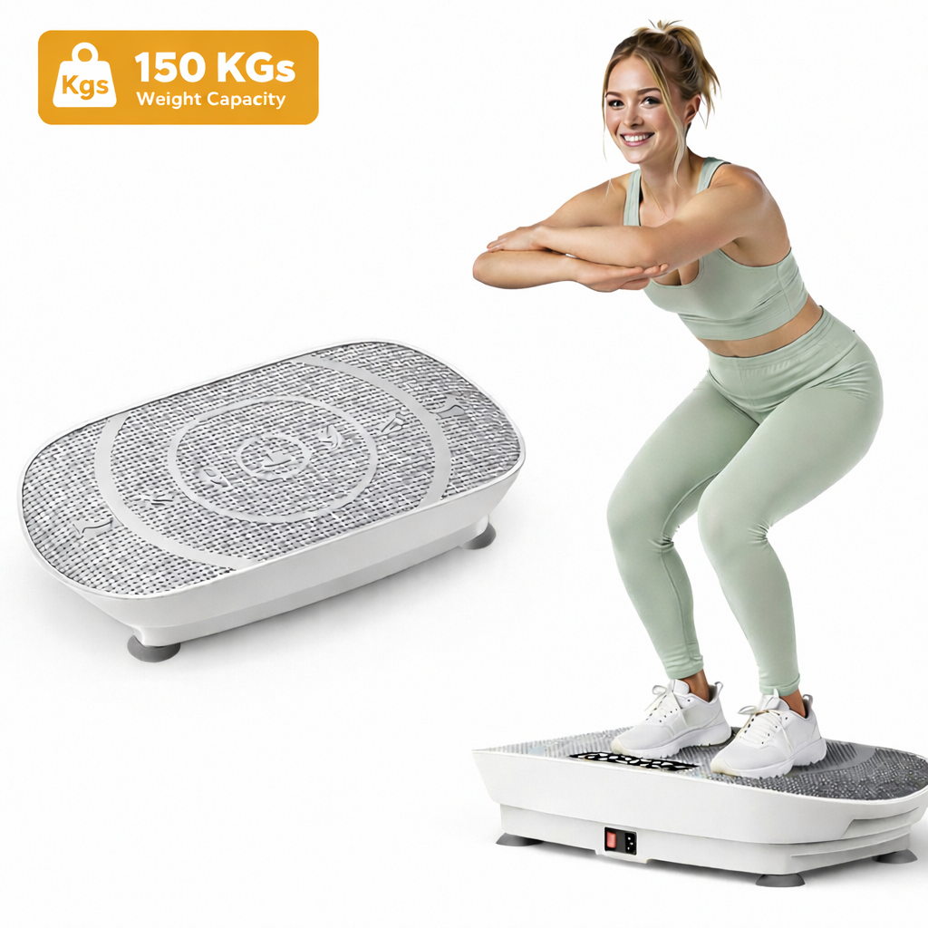 ShakeTheShape™ engages the legs, glutes, core, arms, and back simultaneously. You can also sit or place targeted areas on the plate for focused vibration.